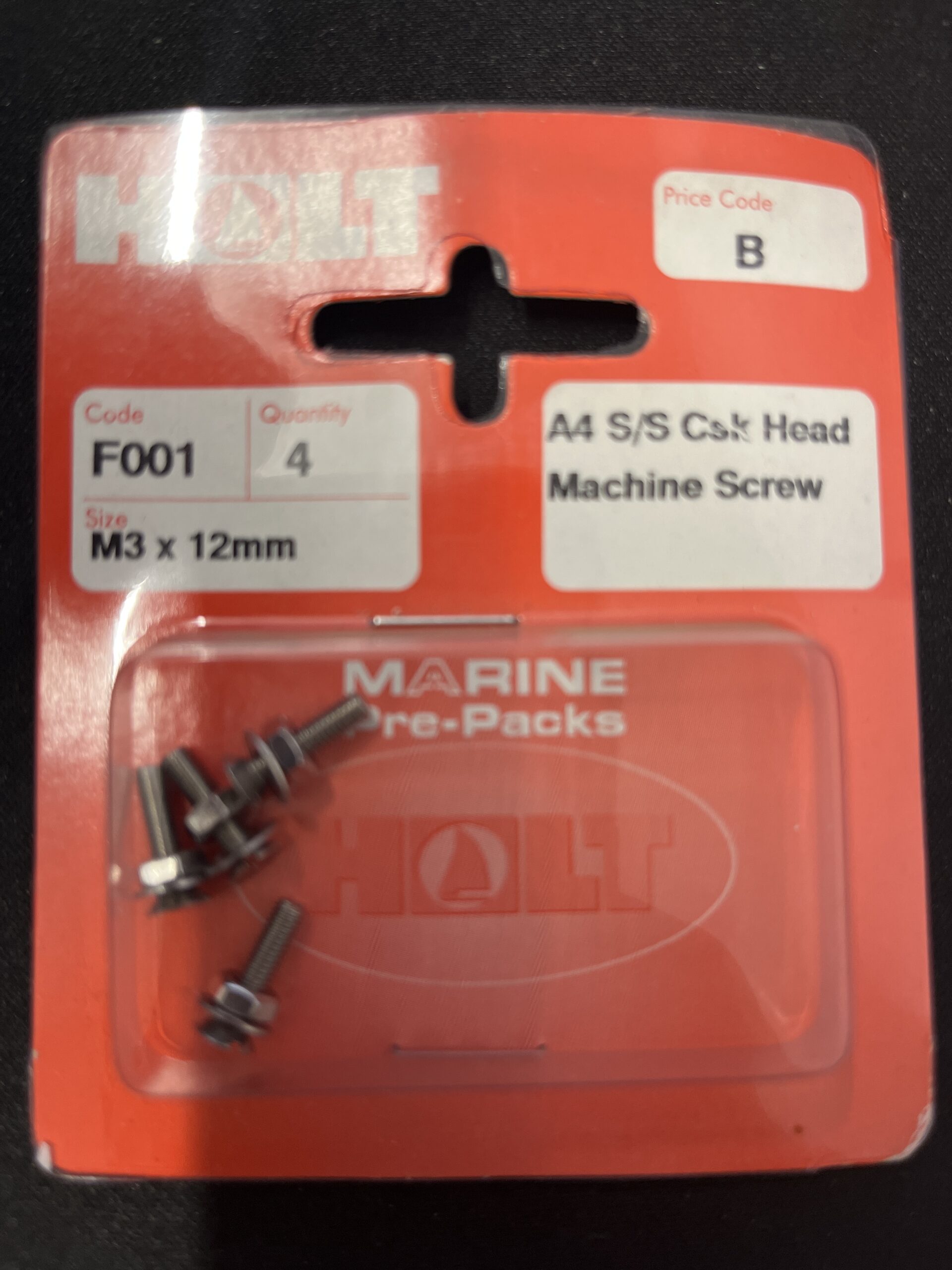 Holt marine F001 m3 x 12mm A4 s/s m/screw pack