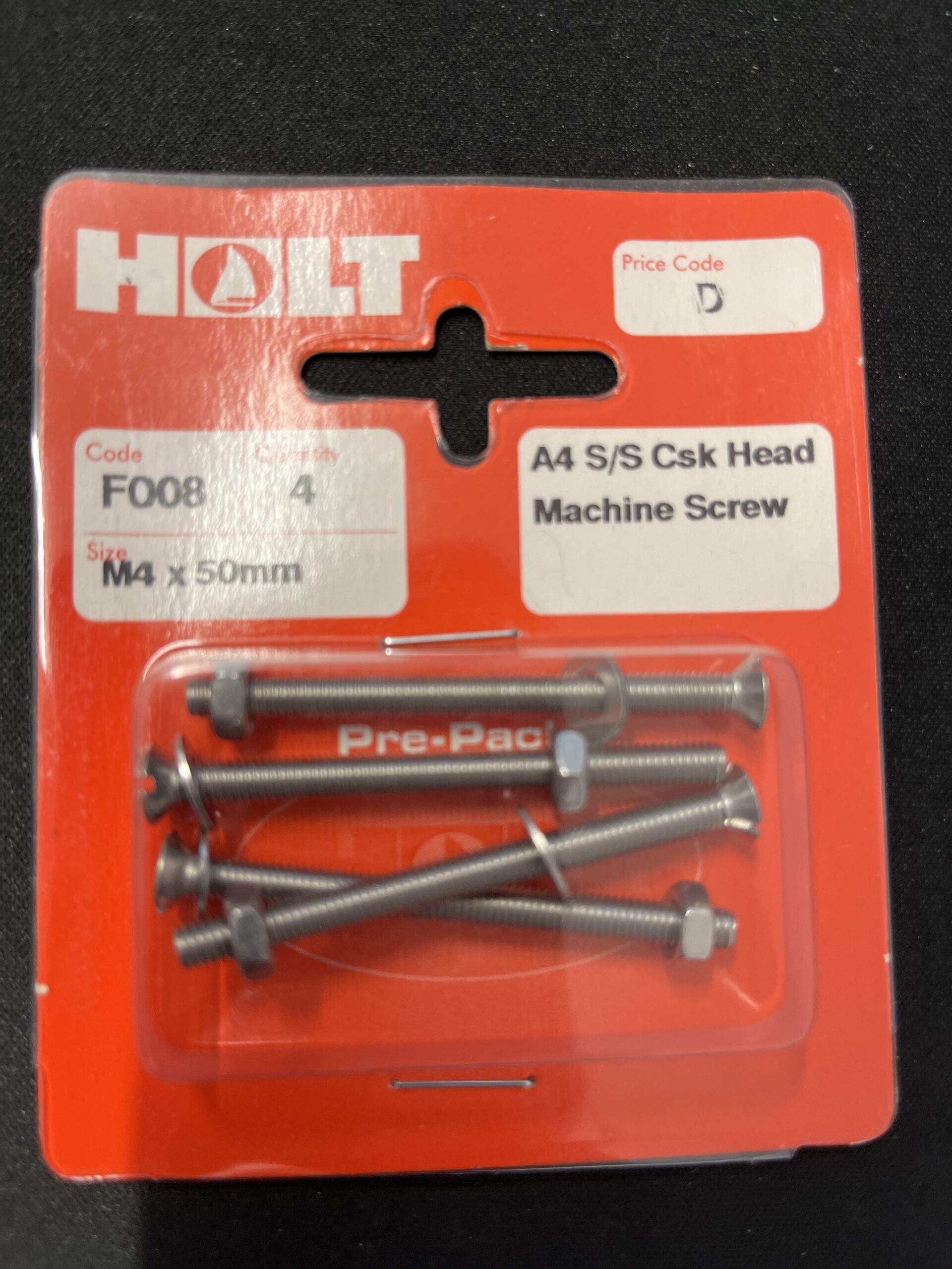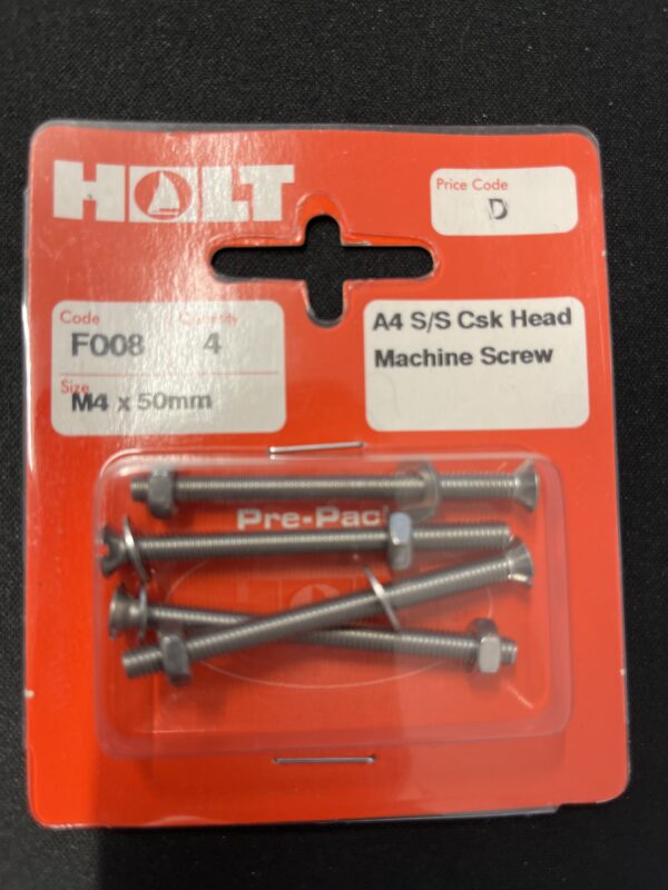 Holt marine F008 m4 x 50mm A4 s/s csk m/screw pack