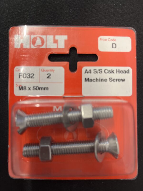 Holt marine F032 m8 x 50mm A4 s/s csk m/screw pack
