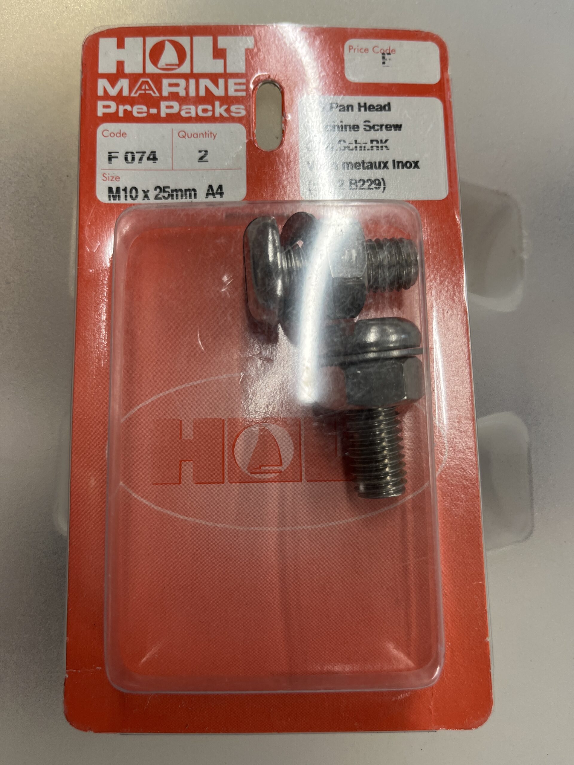 Holt marine F074 m10 x 25mm A4 s\s pan slot m/screw pack