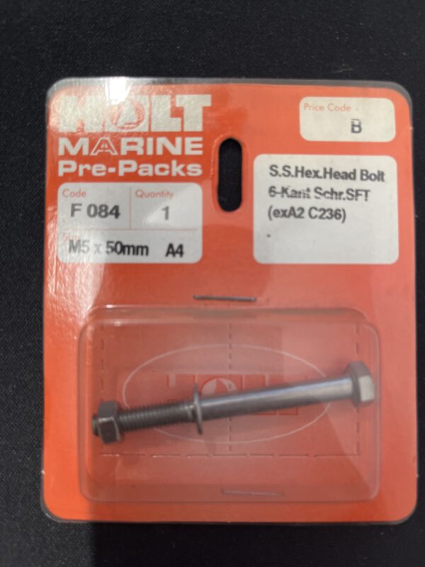 Holt marine F084 m5 x 50mm A4 s/s hex bolt pack