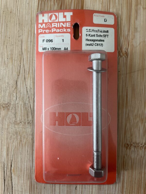 Holt marine F096 A4 s\s m8 x 100mm hex bolt set pack