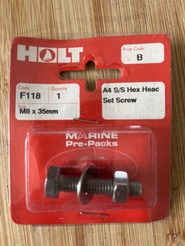 Be the first to review “Holt marine F118 m8 x 35mm A4 s/s hex set bolt pack” Cancel reply