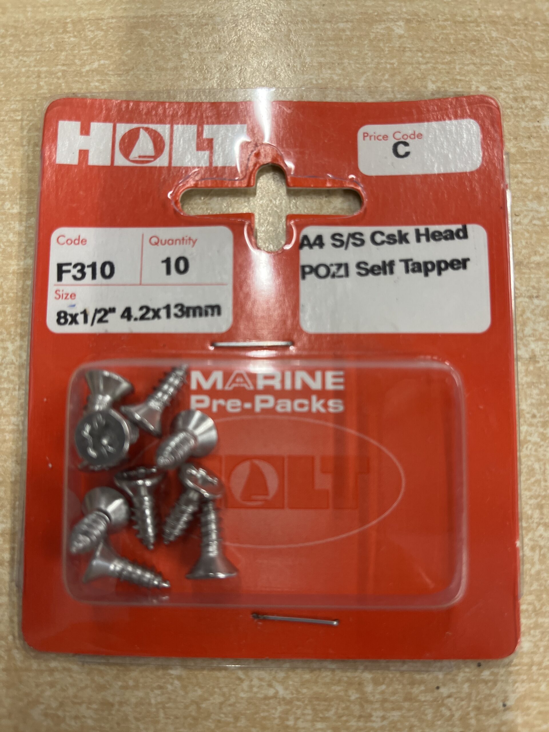 Holt marine F310 8 x 1/2" A4 s/s csk pozi s/tapper pack