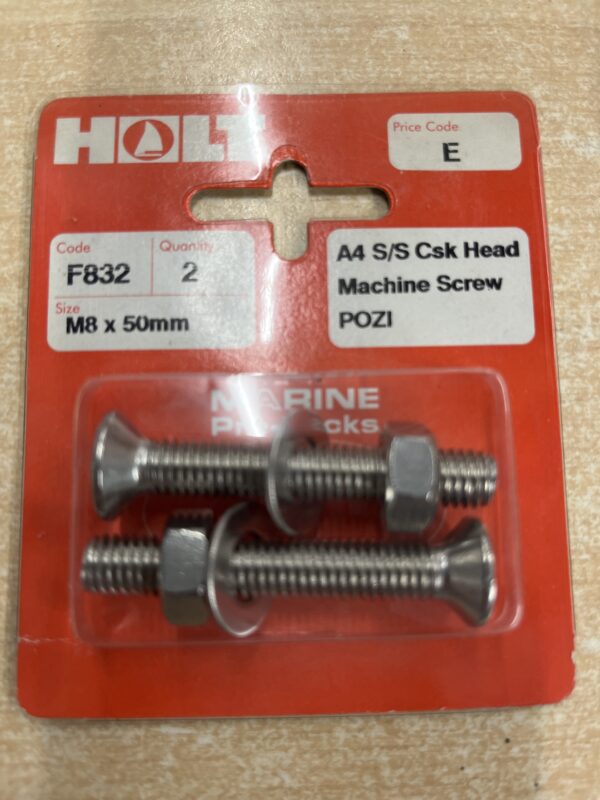 Holt marine F832 m8 x 50mm A4 s/s csk m\screw pack