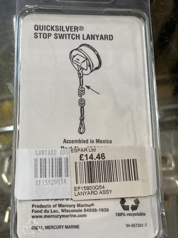 Quicksilver stop switch lanyard 15920Q54 The Quicksilver stop switch lanyard 15920Q54 is an essential component for ensuring the safety and proper functioning of your equipment. Designed with precision and reliability in mind, this stop switch lanyard offers peace of mind during operation. Its durable construction and easy installation make it a practical choice for any user. Trust the Quicksilver stop switch lanyard 15920Q54 to enhance the performance and safety of your equipment.