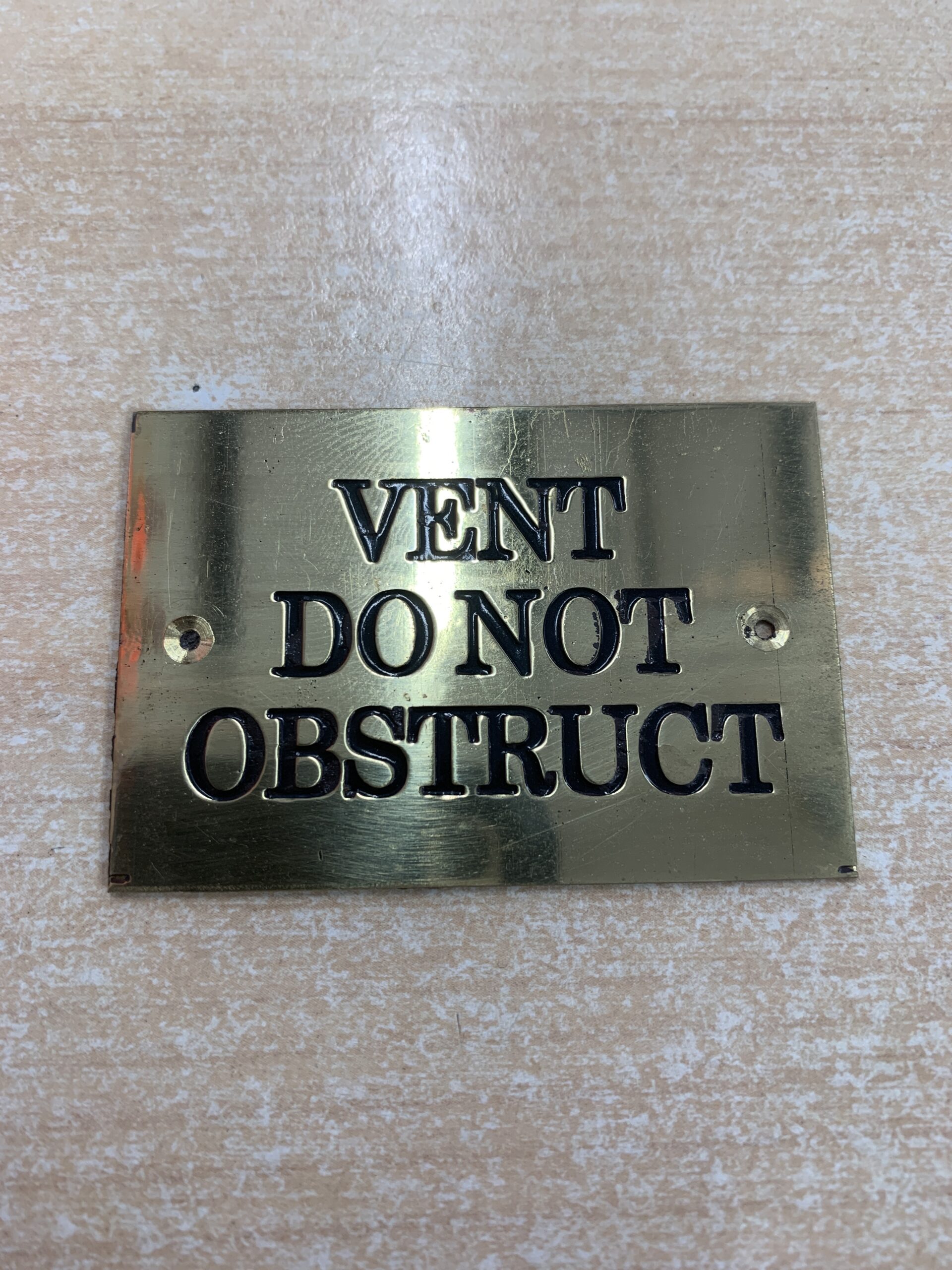 Solid Brass Plaque Label “VENT DO NOT OBSTRUCT screw-on