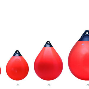 This is a supreme heavy duty buoy made in one piece from a unique blend of high class materials. The A-series buoys are equipped with a rib-reinforced ropehold and are rotmolded from tough, flexible vinyl. The buoys are resistant to all weather conditions. The A-series buoys are used all over the world for different applications, such as in commercial fishing as net buoys, buoys for long lines, lobster and crab pots, markers and as heavy duty fenders.