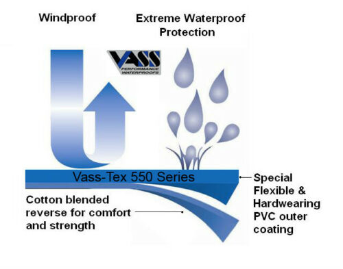 VASS-TEX 550 SERIES IS A RESULT OF MANY YEARS OF MARKET FEEDBACK WHICH HAS HELPED DEVELOP POSSIBLY THE BEST INDUSTRIAL HEAVY WEIGHT WATERPROOF AVAILABLE TODAY.