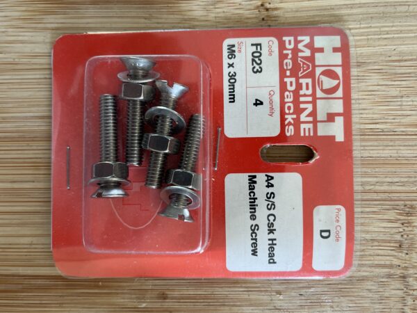 Holt marine F023 m6 x 30mm A4 s/s csk m/screw pack