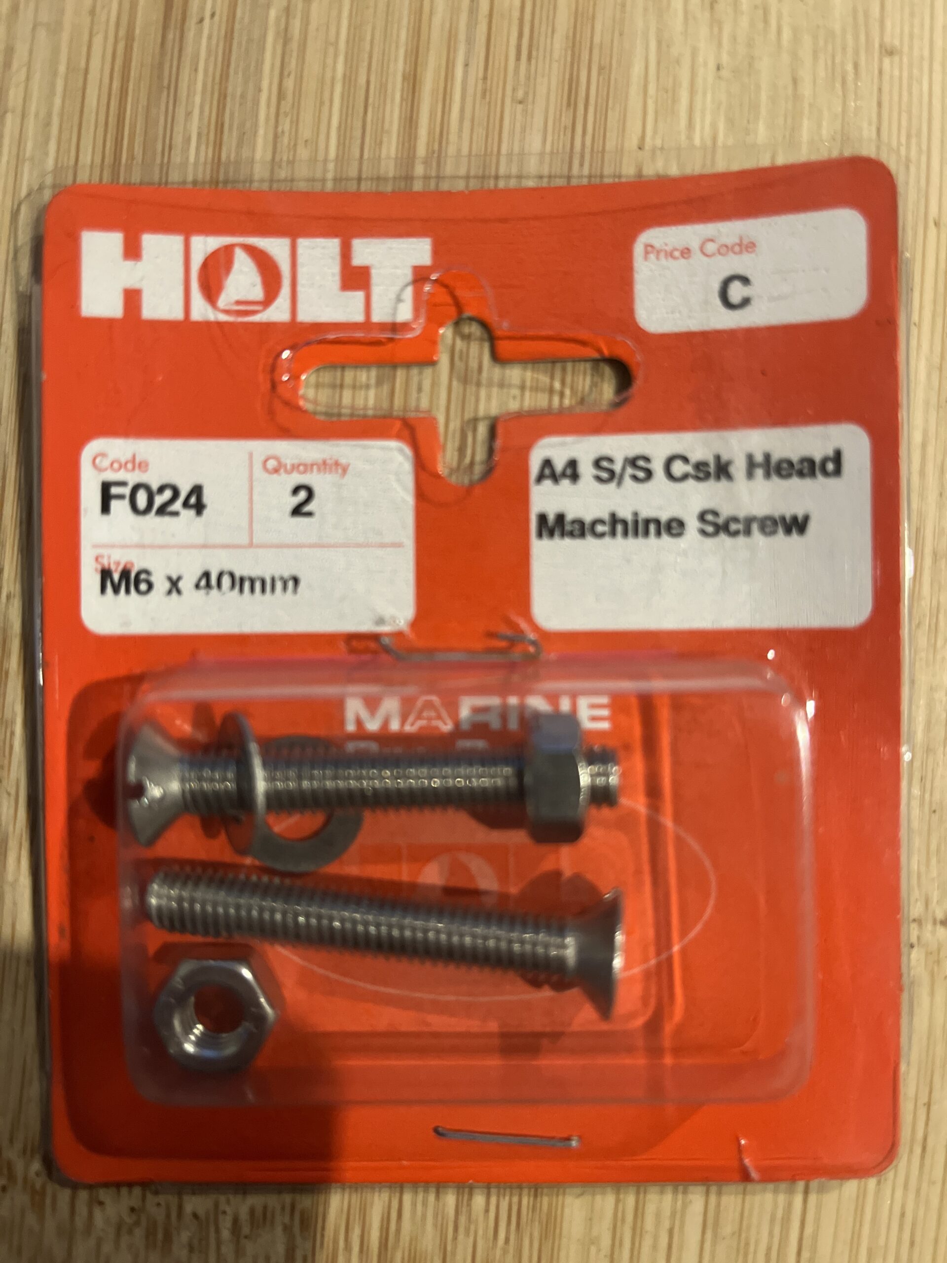 Holt marine F024 M6 X 40MM a4 CSK m\screw pack