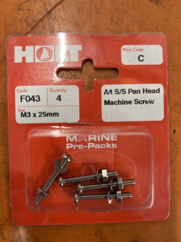 Holt marine F043 m3 x 25mm A4 s\s pan m\screw pack