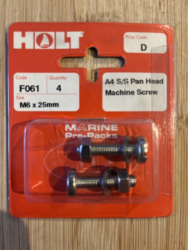 Holt marine F061 m6 x 25mm A4 s\s pan m\screw pack