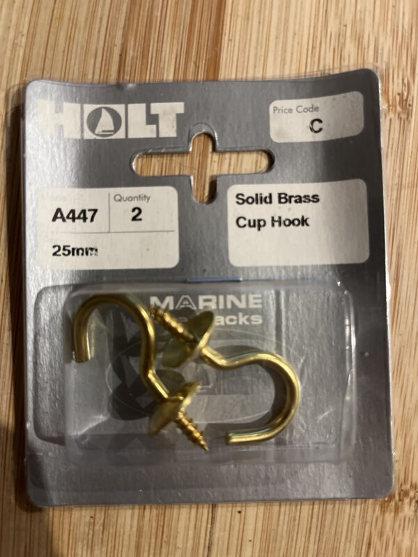 Holt marine A447 25mm solid brass cup hook pack
