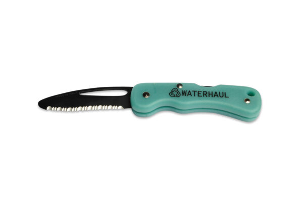 – Safety tipped design with either hidden hooked blade for finer cuts of thinner lines, or blunt tip with longer serrated section for cutting thick nets and ropes.
