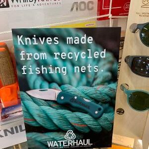 Our beach cleaner’s knife is made from 100% recycled Cornish gill nets, paired with a high-end Italian serrated safety blade. The ultimate boat-safe pocket tool for tackling ghost gear and other forms of plastic pollution.